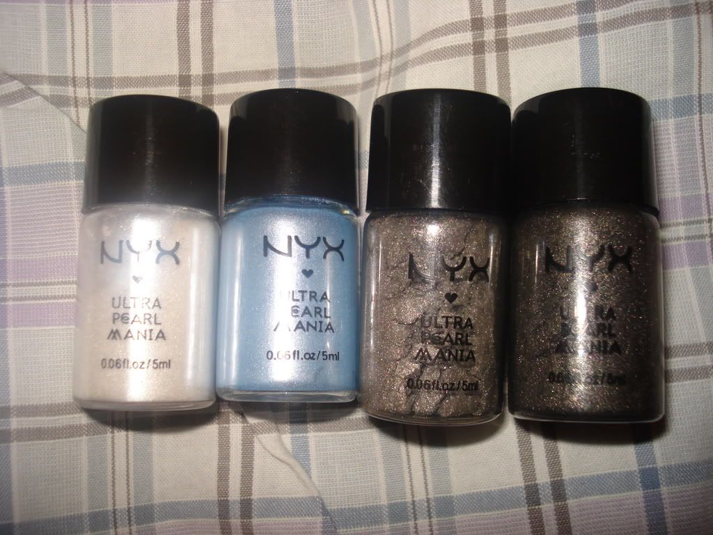 Oi pessoal! No final de Dezembro fiz uma comprinha na Nonpareil Boutique, que chegou esses dias! Ebaaa! Adoooro encomenda novaa! Entre as coisinhas que eu pedi estavam os pigmentos da Nyx. Eu comprei oito, nas cores Charcoal, Black, Sky Pink, Silver, Lilac, Baby Blue, White e Baby pink. Adorei o brilho que as sombras têm, é lindo demais! Me enganei muito em relação ao tamanho, no site parece que o potinho é beem maior do quê o que ele é realmente. Mas, vêm bastante pó, deve durar um bom tempo. Outra coisa foi a pigmentação. Achei que seria mais forte, que ficasse intensa a cor sabe? Não fica muito. Experimentei usar por cima do Jumbo Eye pencil e ficou ótimo, bem mais forte. Tirei algumas fotos das sombrinhas, se vocês clicarem as fotos ficam bem grandes e dá pra ver bem a cor.