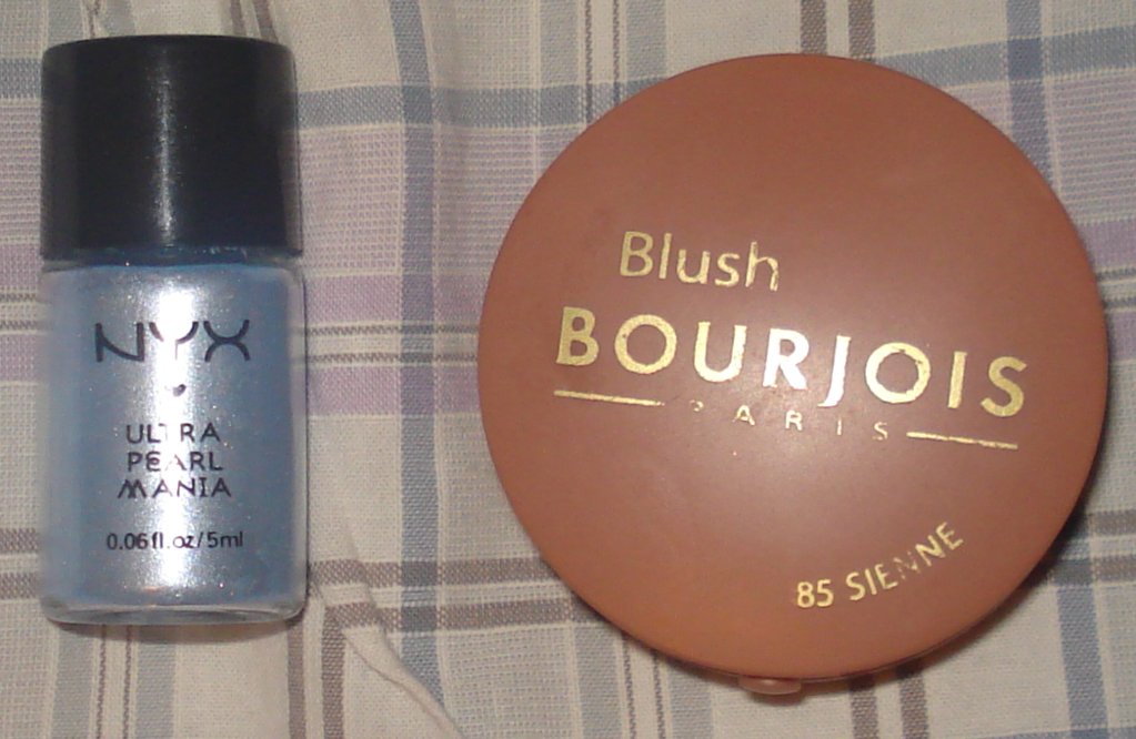 Tirei duas fotos pra ter uma base de comparação. Uma com o blush da bourjois, que é da mesma altura do pigmento e outra com uma moeda de 50 centavos.